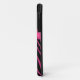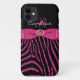 Monogrammed modern hot pink and black FAUX glitter zebra print stripe pattern Barely There Case-Mate brand case with PRINTED ribbon and PRINTED jewel brooch. Customize it to add your name, initial, or other text. If you need assistance, email niteowlstudio@gmail.com.