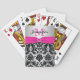 Show your unique style and personality with this monogrammed deck of Bicycle Brand playing cards in fuchsia pink, silver grey, and black damask pattern with a PRINTED ribbon, a PRINTED diamond jewels buckle on it, along with spots to add your own name, monogram, logo, initials, or other text. It would make a great house-warming gift, a wedding party gift, or a party or wedding favour.