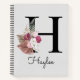 Monogram Pink Boho Girly Floral Initial H Notebook