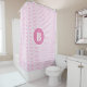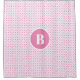 Personalize this pink monogram baby nursery shower curtain for the bathroom with the letter of your choice. Perfect for a baby nursery or kids room. The design features a pink and white circle pattern with a pink circle monogram and one letter of text.