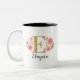Monogram Pink Floral Letter E Two-Tone Coffee Mug