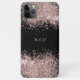 Monogram Pink Glam iPhone 11 Pro Max Case designed on a black background with Pink-Rose Coloured faux Sparkle for an elegant look. To personalize, simply insert your initials into our easy template replacing the sample text. Makes a great gift. Enjoy!