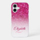 Monogram Pink Glitter Ombre First Name Custom iPhone 16 Case
