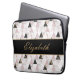 Monogram this pink, gold, white and black geometric design laptop sleeve with your name, initials or text.