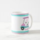 This elegant monogram pink leather golf cart mug has a golf cart that has a digital glitter with a lime green golf seats with a pink argyle golf bag! Personalized with your name and monogram for this one of a kind mug.