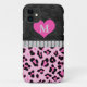 Elegant Monogram, Black fur, Pink glitter heart, Double strand diamonds, Pink Leopard print, iPhone 5 Case