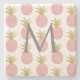 Fun tropical stone coasters adorned with a glitter pink and gold pineapple pattern with your initial.