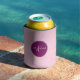 Personalize with your monogram and name on a purple circle. The background is pink with cute little white polka dots.