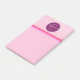 Personalize with your monogram initial and name on a purple circle. The background is pink with cute little white polka dots. The bottom half has a pink gradient border with a solid pink writing area.