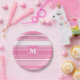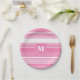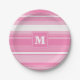 Monogram pink stripes paper plate