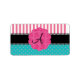 Pink and white stripes pattern and turquoise/teal/aqua diamond polka dots pattern background, pink rose pattern scallop circle and black diamonds (faux diamonds, not real) stripe and monogram letter change to any letter a,b,c,d,e,f,g,h,i,j,k,l,m,n,o,p,q,r,s,t,u,v,w,x,y,z Ideal for bride and groom weddings, wedding showers, engagement showers, engagement party, anniversary, save the date, bachelorette party, birthdays and much more featuring an elegant and traditional fancy lettering
