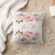 Monogram Pink Wedding Anniversary Flower Wreath Throw Pillow