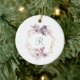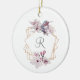 Monogram Pink White Magnolias Bird Gold Frame Ceramic Ornament