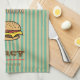 Monogram pretty retro pattern with cute hamburger kitchen towel