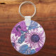 Monogram Purple and Blue Vintage Flower Art Keychain