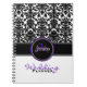 This monogrammed purple, black, and white damask pattern wedding planner note book has template boxes for you to add your name, monogram, or other text, and would make a chic and stylish place to keep track of all your wedding plans or other information. If you need help customizing this item, please email niteowlstudio@gmail.com for assistance.