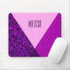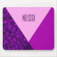 Modern abstract geometric design, trendy shades of purple, lilac, violet, magenta. Deep purple monogram in minimalist font. Pink background. Cool and fashionable.