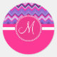Monogram Purple Pink Tribal Chevron Zig Zags Classic Round Sticker