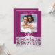 Do you share a love that will last an eternity? Well then, this romantic and elegant monogrammed dark magenta purple and silver grey floral photo wedding invitation has a PRINTED ribbon and bow with a pair of PRINTED diamond jewel and FAUX glitter (simulated) joined hearts on it, along with an ornate scrolled border on the back. Upload your own digital photo into the template area. ***PLEASE NOTE there are no raised elements on this invitation. Everything is printed flat. It is shown here on basic paper, but for an added bit of elegance, I suggest the metallic ice paper if your budget allows, as it has a lovely subtle opalescence to it that really sets the invitation off. I would NOT use any of the coloured papers (champagne, gold, silver, felt, speckled) as they will ALL alter the colours of the design (the whites of the diamonds will no longer be white). The silver metallic paper is much darker than what it appears like online. The linen paper will add a texture of thin lines that you may not want, and it is a light weight paper. The basic or recycled papers are a cheaper alternative if you are on a tighter budget. ***PLEASE NOTE that if you change the fonts or size of the fonts, it may alter how your invitation prints. It will print the way you see it on your monitor, so if you have alignment issues, or sizing problems, please contact me for help. I will not see your invitation once you order it, and Zazzle will NOT edit anything (typos, alignment, etc.). If you require assistance or would like any other matching items, please email your request to niteowlstudio@gmail.com.