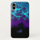 Monogram Purple Turquoise Fractal Abstract iPhone X Case. A unique and stylish protective cover for your favourite new phone. Fill in your name and initial at the prompt to personalize and customize any way you like.