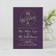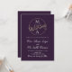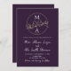 Elegant, modern, contemporary, minimalist, simple purple wedding invitation with unique monogram with hand drawn couple love birds RSVP and QR code at the back.