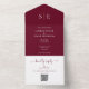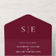 This chic minimalist all-in-one wedding invitation can be personalized with your monogram initials and wedding day information on a burgundy background. The invitation includes a perforated RSVP card with your wedding website QR code and details. Designed by Thisisnotme©