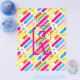 Monogram Rainbow Diagonal Lines Pattern Pop Art Trendy Design For All Occassion, Holiday, Birthday Party, Anniversary - gifts and presents, with Monogram text template. Summer Holiday. Red, Blue, Pink, Yellow, Violet, Magenta, Green - Abstract colours.