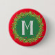 Monogram Red and Green Wreath Christmas 2 Inch Round Button