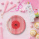 Monogrammed red and white striped pattern. Alternating red and white stripes.