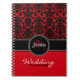 This monogrammed red, black, and white damask pattern wedding planner note book has template boxes for you to add your name, monogram, or other text, and would make a chic and stylish place to keep track of all your wedding plans or other information. If you need help customizing this item, please email niteowlstudio@gmail.com for assistance.