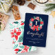 Monogram Red Bow Wreath Blue Christmas Foil Holiday Card
