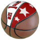 This is a full size basketball with two panels designed with a monogram name (large first letter) and uniform number, in popular college colours. This one is shown in Crimson Red and Cream. The second panel has team colours with three stars. All text, art, and colours can be removed, or changed as desired. One panel can be left white for autographs, etc.