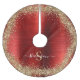 This gorgeous Christmas tree skirt features red brushed metal background with sparkling gold glitter borders. Add your family name and initial for a personal touch.