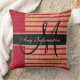 Monogram Red Stripes Burlap Rustic Jute Throw Pillow