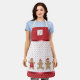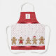 Red & White althernating / inverted polka dots from steam to seam, with red metallic faux foil print ribbon separators at each transition, and five adorable gingerbread people lined up along the bottom of this classic Christmas Apron. Add your initial with the personalize this tool to really make this apron special.