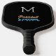 Up your game with this trendy pickleball paddle. The paddle displays the word 'Pickleball' in script typography, with the word reflected underneath. Personalise with your initial for a cool finishing touch.