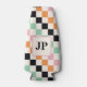Monogram Retro Chequerboard Custom Monogrammed Can Coolers features a colourful chequerboard pattern in green, pink, orange, black and white with your personalized monogram. Personalize by editing the text in the text box provided. Perfect gift for golfers for birthday, Christmas and more. Designed by ©2024 Evco Studio www.zazzle.com/store/evcostudio
