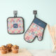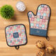 Monogram Retro Chequered & Daisy Pattern Dusty Pin Oven Mitt & Pot Holder Set