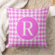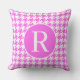 Monogram RF Classic Serif Pink Houndstooth Throw Pillow