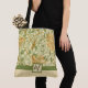 A floral tote bag with a moss green ribbon and square to add your monogram. A floral pattern by the English artist William Morris (1834-1896), called Honeysuckle (c. 1885), an intricately detailed wild honeysuckle vine of orange flowers and lush green foliage.