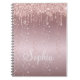 Personalized monogram name or initial rose gold faux dripping glitter and sparkles. A glam, girly chic notebook for taking notes at school, college, work, for homework or as a diary journal. Easy to customize to change font and/or colour with the personalize button, and makes a perfect gift for bridal shower, wedding guest, sweet 16 birthday, anniversary or bachelorette party gift.