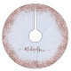 This gorgeous Christmas tree skirt features white brushed metal background with sparkling rose gold Faux-Glitter borders. Add your family name and initial for a personal touch.