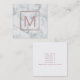 monogram rose gold on white marble square business card