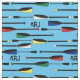 Customize this rowing fabric with your monogram or click the customize button to change the background colour. The print features oars in Olympic inspired colours on a blue (changeable) background.