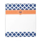Monogrammed royal blue quatrefoil pattern with orange accent notepad.