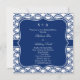 Monogrammed royal blue seigaiha pattern. Royal blue seikaiha japanese pattern. In the middle there is a royal blue shape and the invitation's text is white. Wedding invitations.