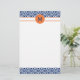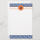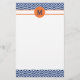 Monogram Royal Blue with Orange Chevron Pattern Stationery