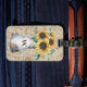 Introducing our Monogram Rustic Sunflower Vintage Letter Decoupage Luggage Tag! Featuring watercolor illustration of Yellow sunflowers in a jug. Personalize it for a unique touch on your journeys.