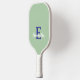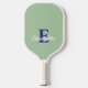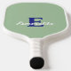 Personalized customized Pickleball paddle with monogram Initial letter and Name. Modern minimalist minimal with royal blue typography, white script calligraphy and trendy sage green background. Chic stylish feminine fashionable sport equipment for you or as an original creative thoughtful and useful gift for her.