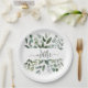 Monogram Sage Green Eucalyptus Greenery Leaves Paper Plate